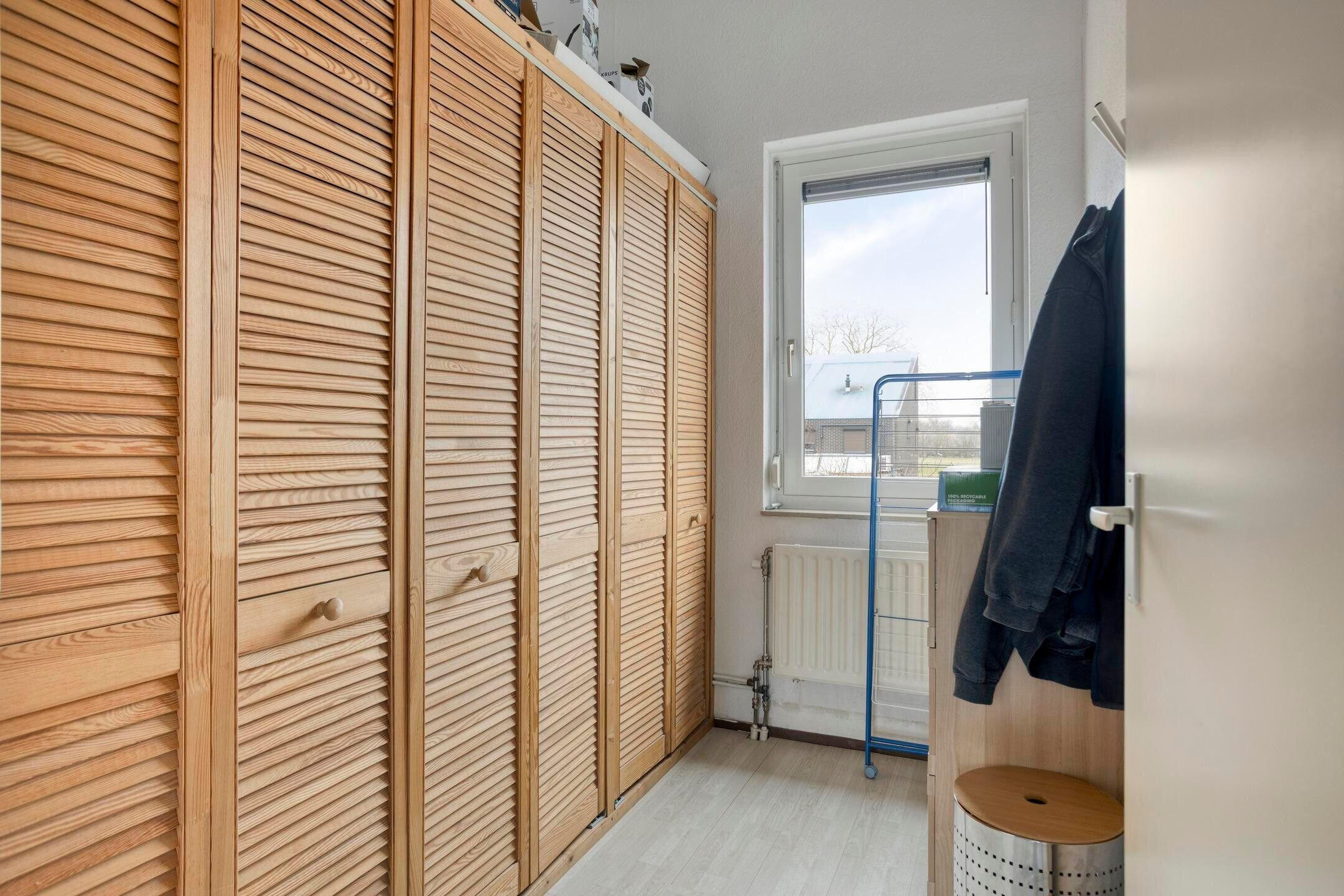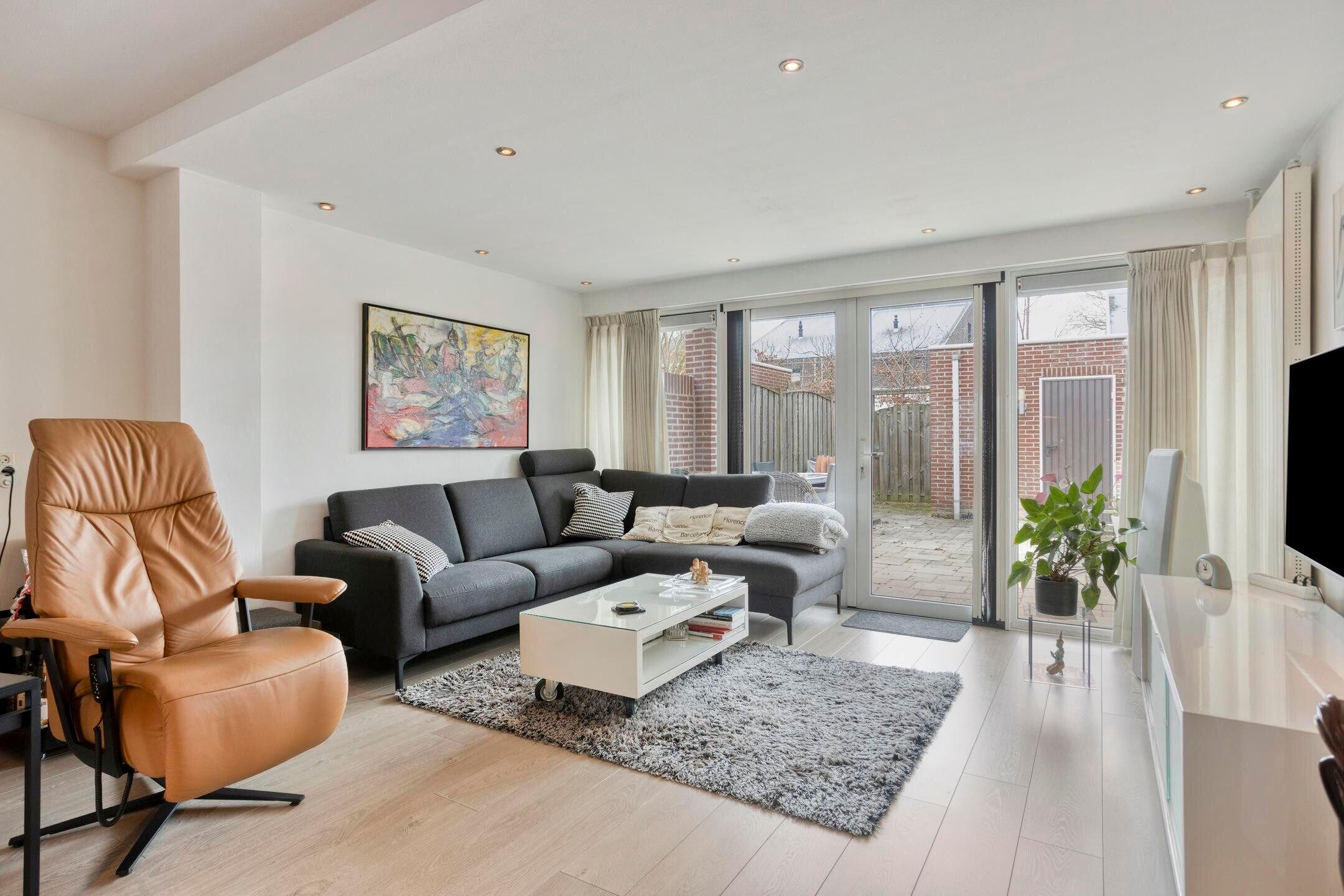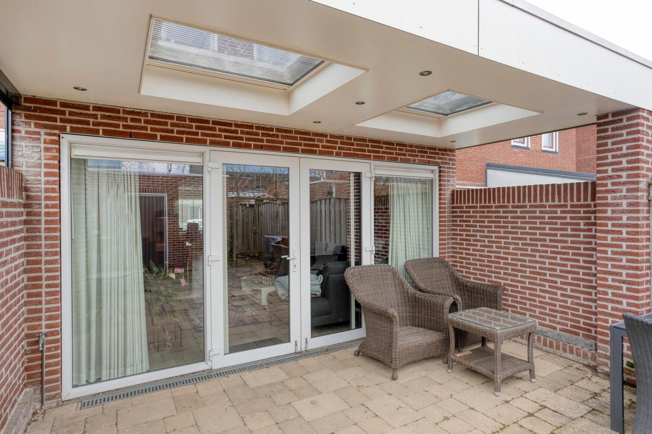 Aan de achterzijde heeft u vanuit de woonkamer middels een openslaande deur toegang tot de tuin. Deze beschikt over een overdekt terras, achteringang en een vrijstaande berging van ca. 6m2.