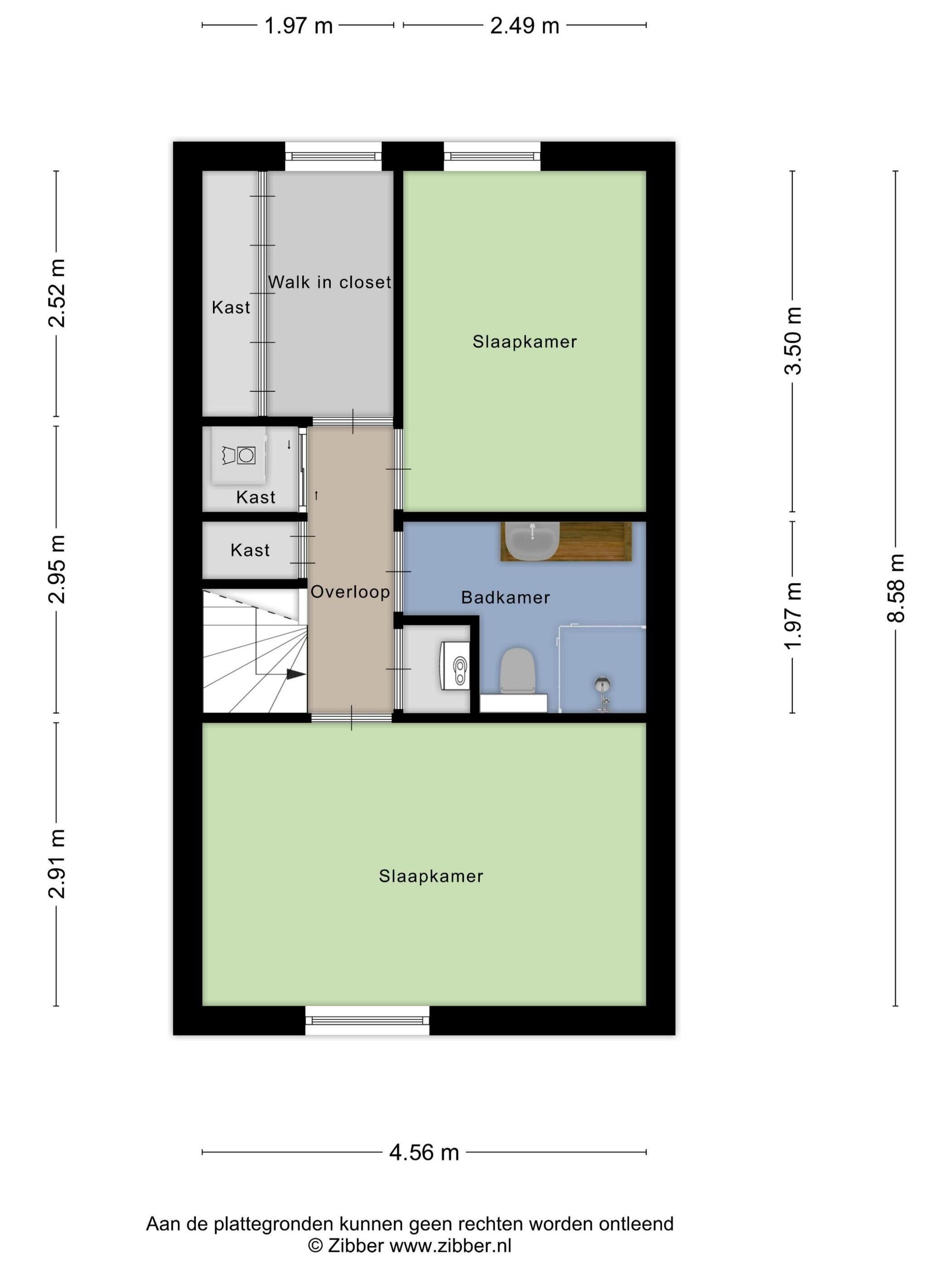 Hier bevinden zich 3 slaapkamers, de badkamer en de wasruimte.